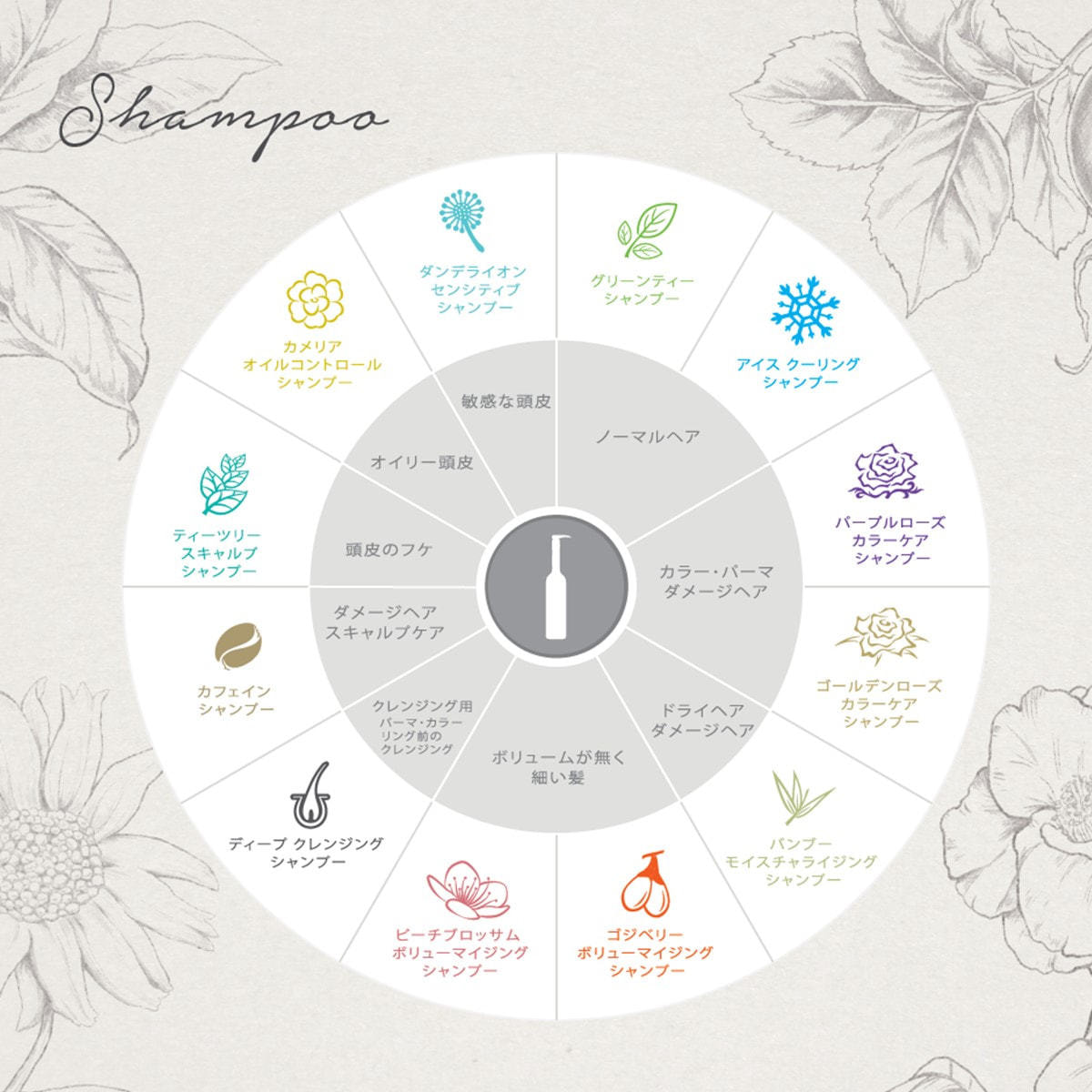 水、ラウロイルメチルイセチオン酸Na、コカミドプロピルベタイン、デシルグルコシド、ココアンホ酢酸Na、ラウリルグルコシド、フェノキシエタノール、グリセリン、カプリン酸ポリグリセリル-3、エチレンジアミンジコハク酸3Na、香料、ポリクオタニウム-10、ラウリルグルコースカルボン酸Na、ココイルグルタミン酸Na、プロパンジオール、グリコシルトレハロース、クリンバゾール、加水分解水添デンプン、クエン酸、サリチル酸、ナイアシンアミド、酵母エキス、ツバキ花エキス、セイヨウトチノキ種子エキス、グリチルリチン酸アンモニウム、パンテノール、PG、カフェイン、ビオチン